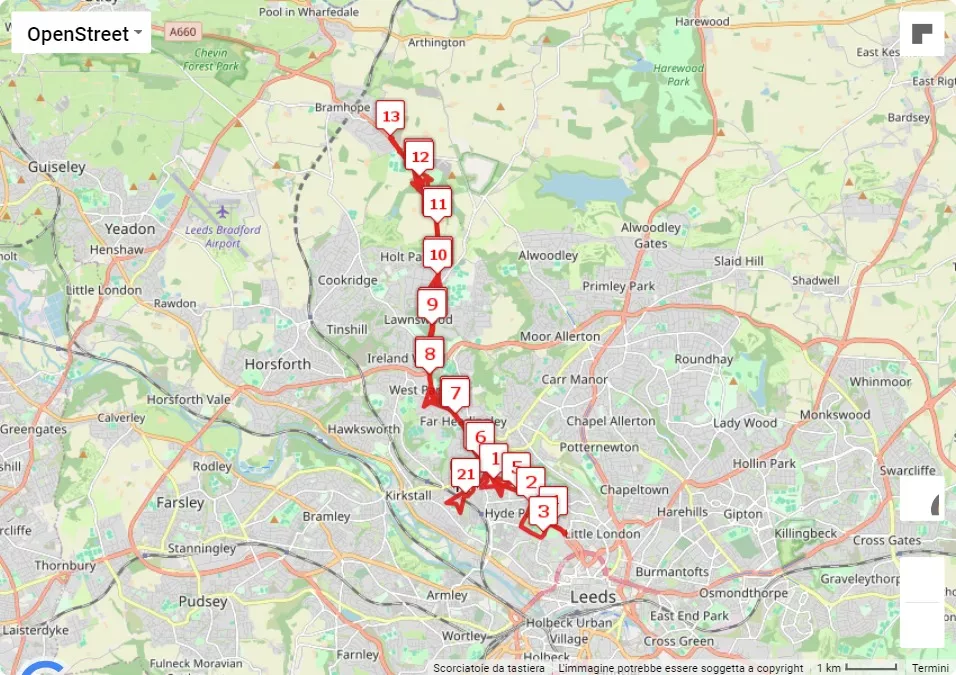 Dieses Bild zeigt ein Motiv zum Thema Leeds Marathon Will Return in 2025 und eignet sich Leeds Half Marathon, 2024: 3D Video Course Map Of 21.098 Km Race – Idee, Foto & Vorlage www.goandrace.com
