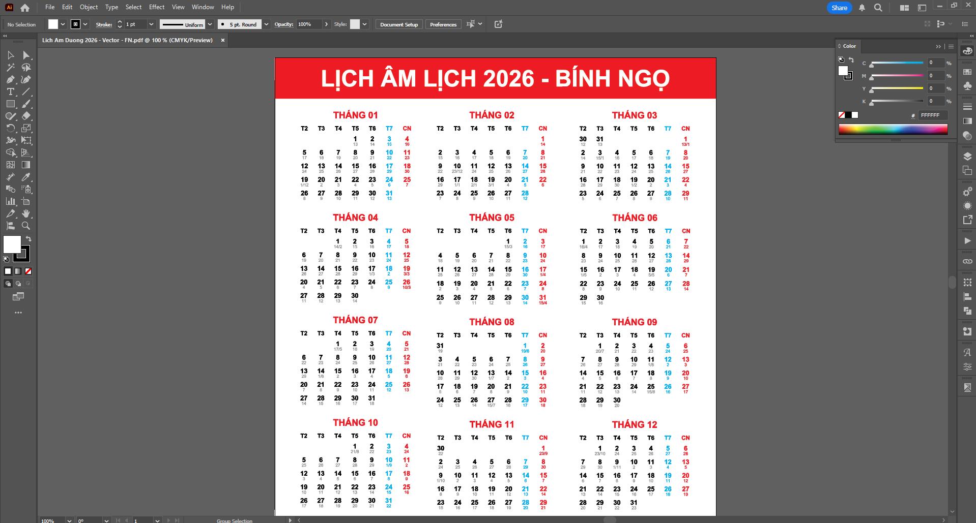 Lịch 2026 Vector Lịch âm Dương đầy đủ Chất Lượng In ấn – In Khởi Minh