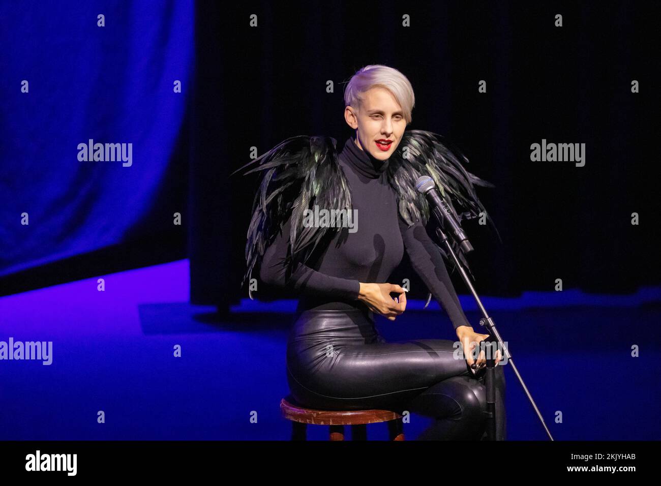 Dieses Bild zeigt ein Motiv zum Thema Lisa Eckhart bei ihr Soloprogramm „Lisa Eckhart – die Vorteile des und eignet sich www.alamy.de