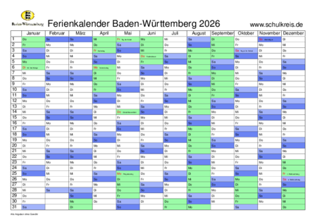 Kalender 2026 Baden-Württemberg BW Zum Ausdrucken Kostenlos Online – Idee, Foto & Vorlage